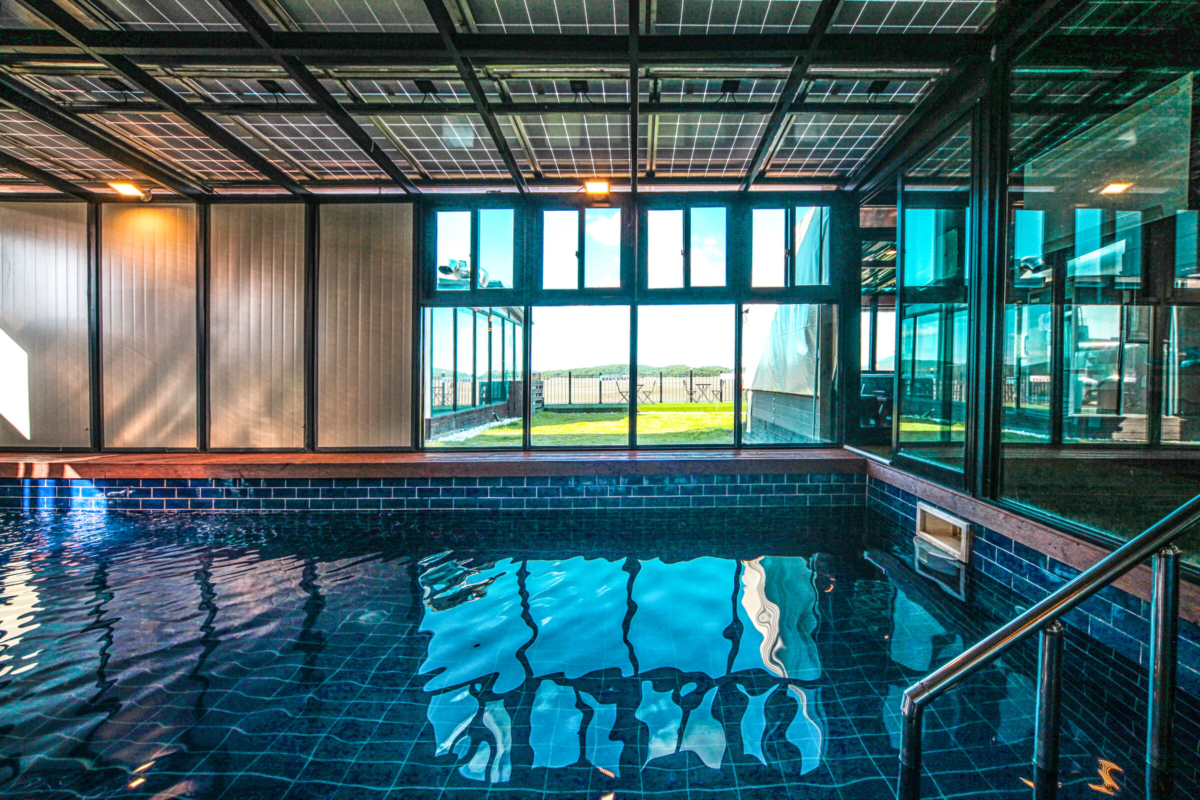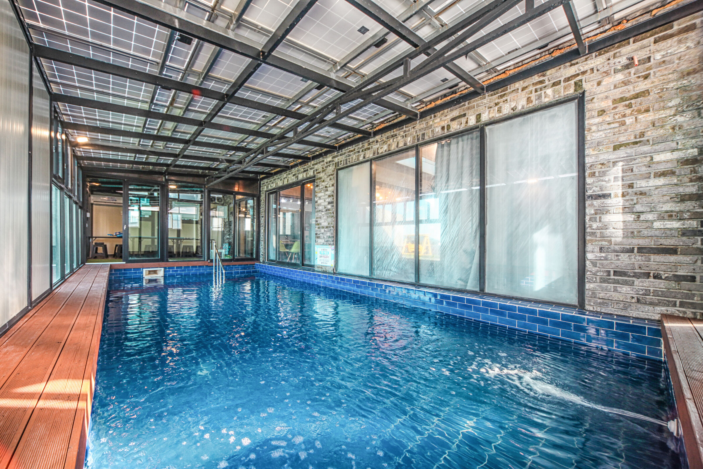 부대시설 : 실내온수풀장(4m*8m), 전 객실 에어컨, 바베큐장(요청시 버너+불판 제공)