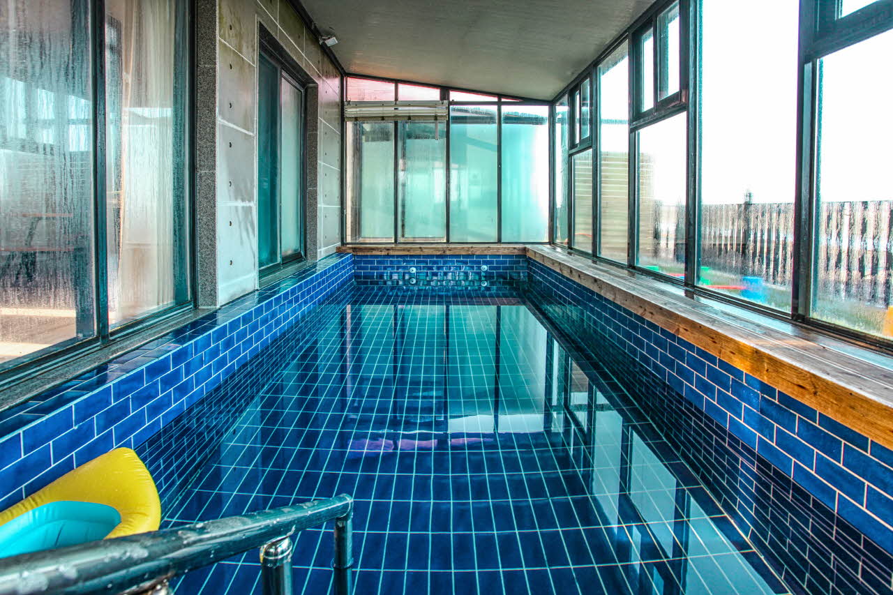 부대시설 : 실내온수풀장(3m*7m), 전 객실 에어컨, 바베큐장(요청시 버너+불판 제공)